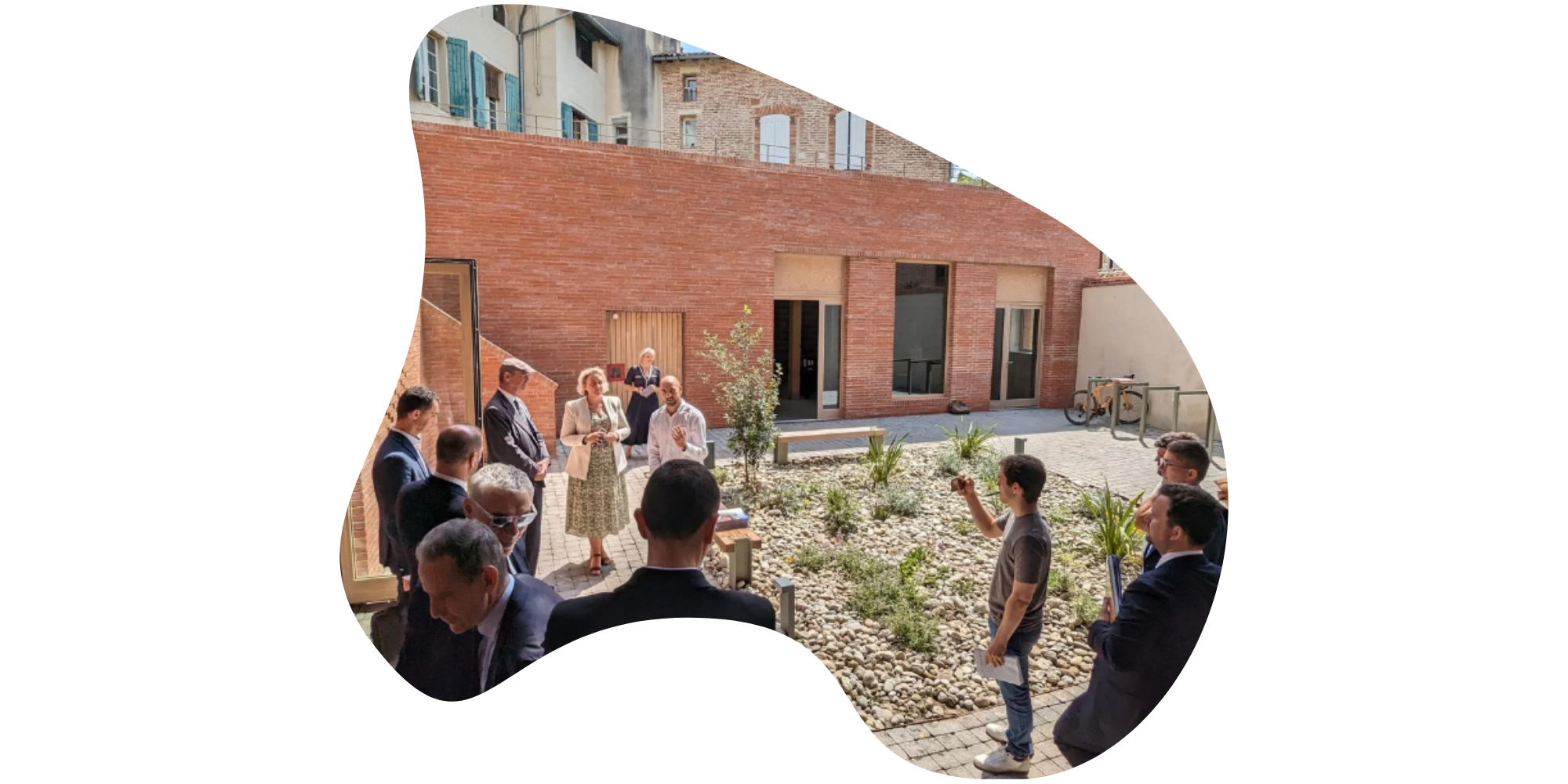 L’auberge de Boffres, restaurant coopératif ouvert en 2021 en Ardèche, accompagné par Villages Vivants. ®Villages Vivants | Le parc éolien de l'Hyrôme, mis en service en 2020 grâce à Énergie Partagée. ®Studio Plouf | Le projet Génération Pasteur pour la réhabilitation du centre-ville d'Albi, grâce à la foncière solidaire Bellevilles. ©Banque des Territoires |